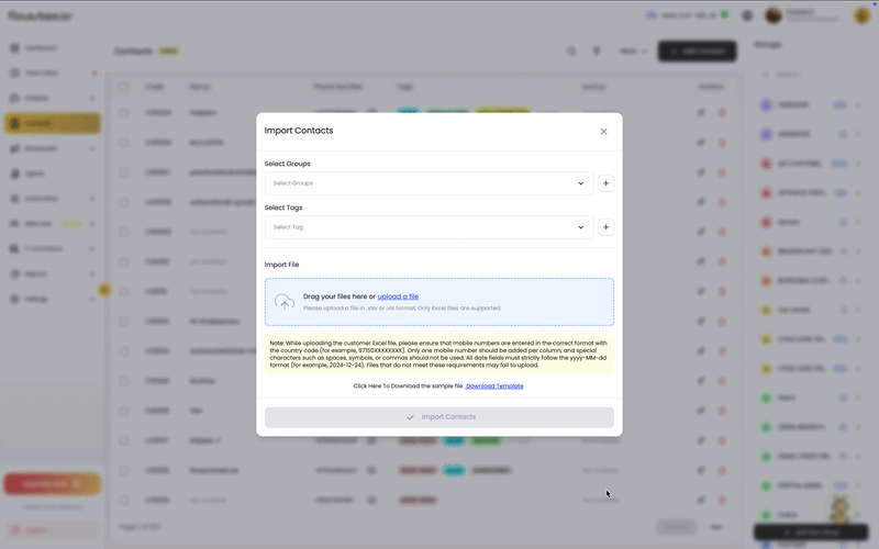 Bulk Contact Creation allows you to upload multiple contacts at once using an Excel file. This helps you save time and quickly prepare your contact list for campaigns, follow-ups, and communication.