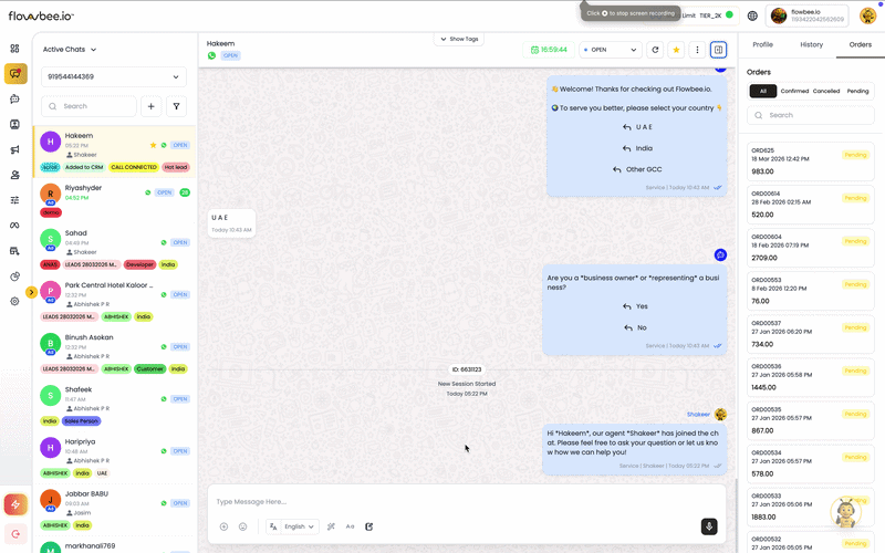 Send predefined responses instantly using Quick Messages. These are saved replies that help you respond faster to common customer queries without typing the same message repeatedly.