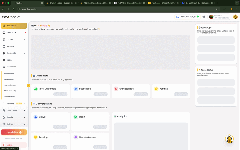 The Default Bot is the chatbot flow that automatically starts when a customer sends a message to your WhatsApp. It ensures that every incoming conversation receives an instant response without any delay.